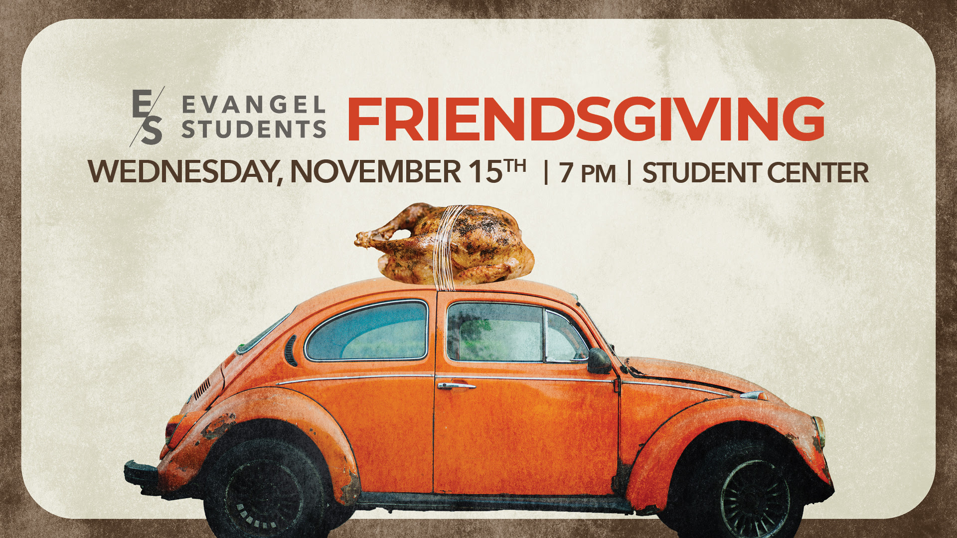All Evangel 6th-12th graders are invited to join us on Wednesday, November 15th for Friendsgiving! We're taking a fun spin on our normal Wednesday night service complete with games, a…